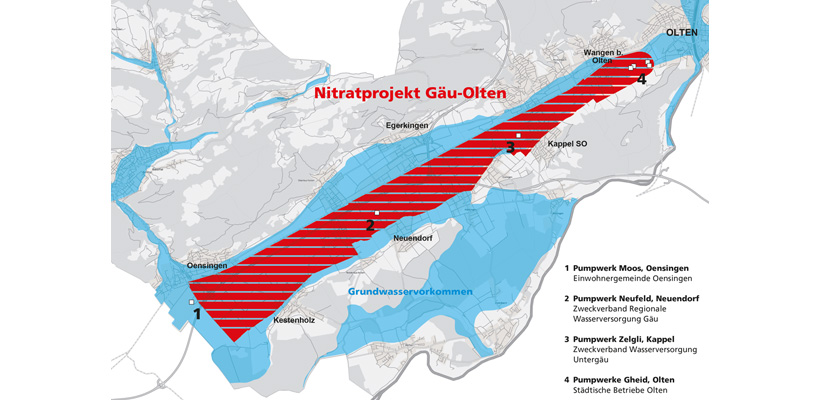 Das Oltner Trinkwasser weist 2020 einen Nitratgehalt von durchschnittlich 26.4 mg/l auf. Der Toleranzwert liegt bei 40 mg/l. Zusammen mit anderen Wasserversorgungen, Vertretern der Landwirtschaft und dem kantonalen Amt für Umwelt setzt sich die a.en in der Nitratkommission Gäu-Olten dafür ein, längerfristig wieder einen Nitratgehalt von unter 25 mg/l zu erreichen.